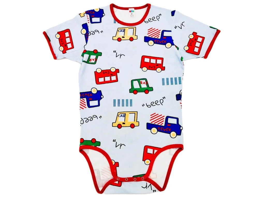 Body má krátké rukávy a 4 patenty v rozkroku pro snadnou výměnu plenky.