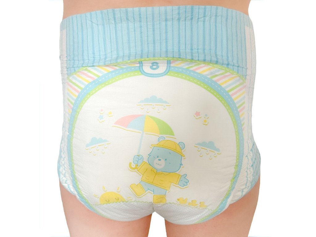 Stejně jako u skutečných dětských plen je i zde použit suchý zip. Textilní vnější strana a moderní potisk původních Teddy's Ultra byly samozřejmě zachovány.