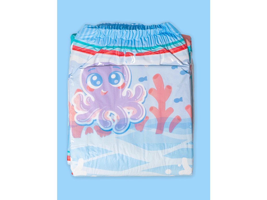 Tyto ABDL pleny spojují hravý podmořský design s vysokou savostí 6500 ml, takže vás udrží v suchu a bezpečí ve dne i v noci.
