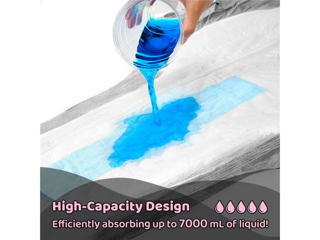 Naše pokročilé jádro s odvodem vlhkosti je navrženo pro maximální kapacitu. Sahá od přední až po zadní část a efektivně absorbuje až 7000 ml tekutiny. Vysokokapacitní konstrukce zabraňuje protečení, snižuje kontakt pokožky s vlhkostí a zajišťuje dlouhotrvající sucho a pohodlí. Ať už na den nebo na noc – spolehni se na špičkovou ochranu, díky které si můžeš užívat den sebevědomě a bez starostí.