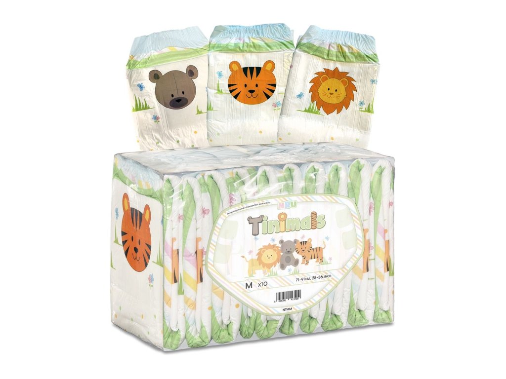 NRU Tinimals mají stejný základ jako náš oblíbený produkt STR8UP, ale s naším novým potiskem s pastelovými barvami a roztomilými zvířátky. S tygrem, medvědem a lvem jsou Tinimals povinni vytvářet úsměvy na všechny strany. Každé balení obsahuje kombinaci 3 designů přistávacích zón. Která bude vaše oblíbená? Nové inovativní jádro obsahuje japonskou SAP nové generace, která dává těmto plenkám masivní hodnocení 8000 ml! STR8UP byl navržen pro delší dobu nošení a noční ochranu. Vyznačuje se barevným, hravým designem, silným plastovým pláštěm a extra lepivými, extra velkými páskami pro zvýšenou bezpečnost. Ale pozor, vráska a tloušťka nejsou pro slabé povahy, zvláště když jsou mokré!